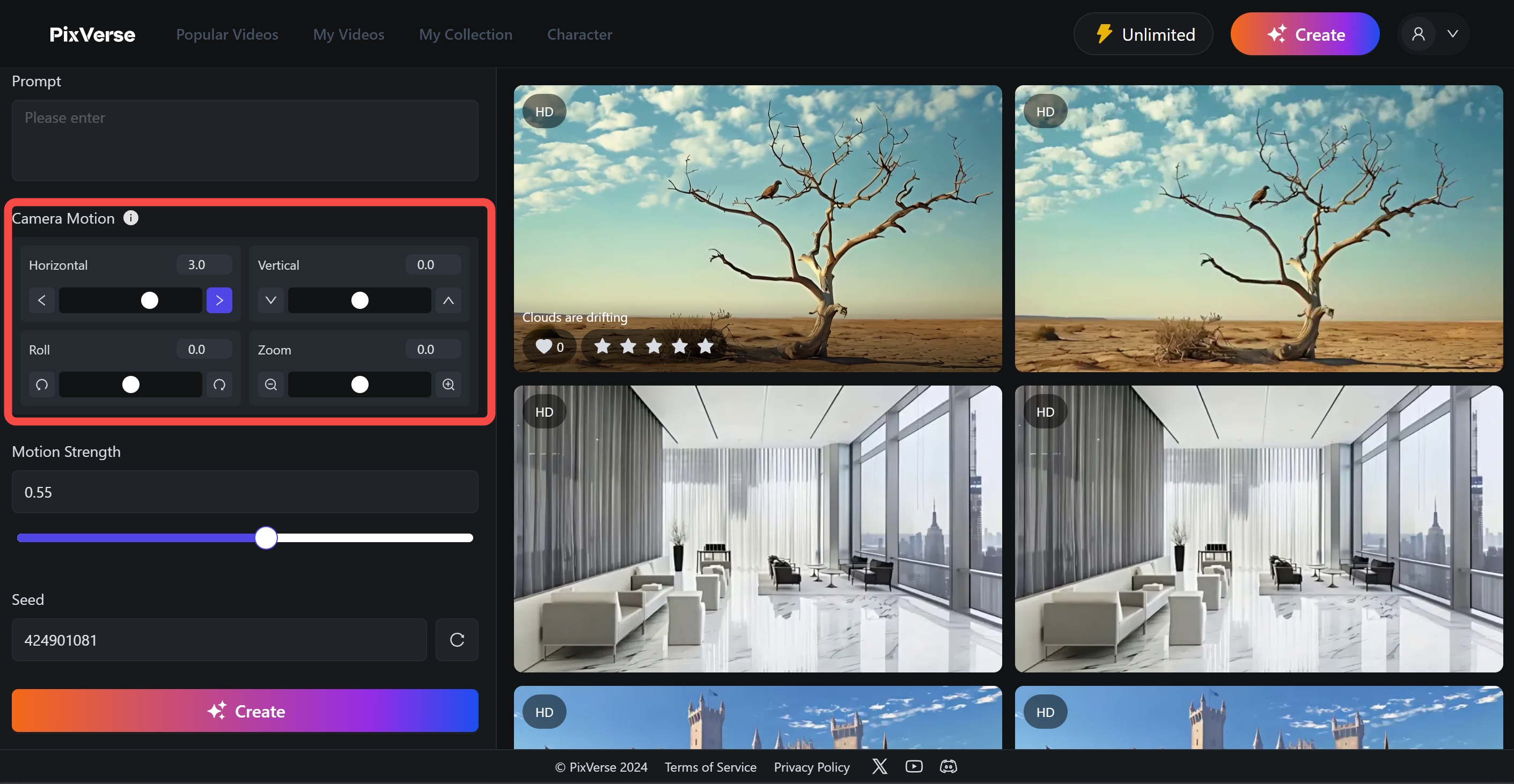 选择好种子(seed),是否高清(HD Quality),是否去除水印(Remove Watermark)。