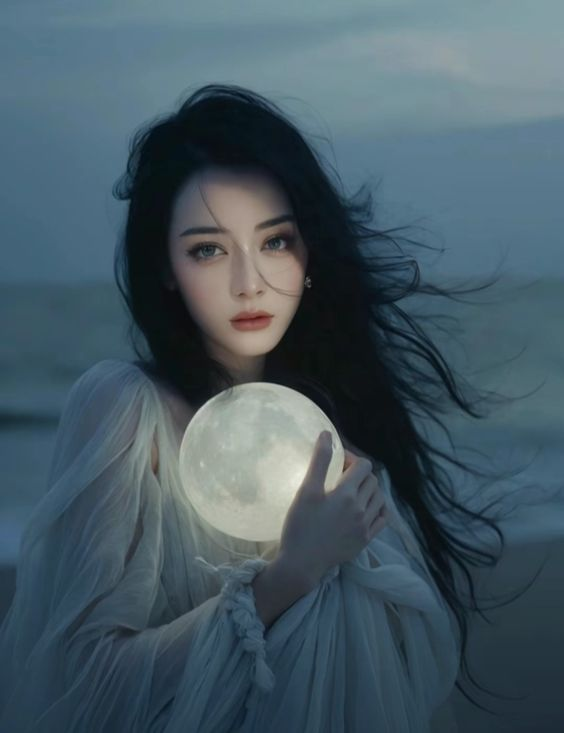 Asian Female Devil, Huge eyes in the starry sky, Infrared photographic style, Whole body, Contrasting compositions, Starry sky light source, Delicate makeup with glossy texture, wide-angle lens, Green, white, infrared, Mystical nervousness, High-resolution infrared technology --style raw --s 750 --ar 2:1 --v 6.0