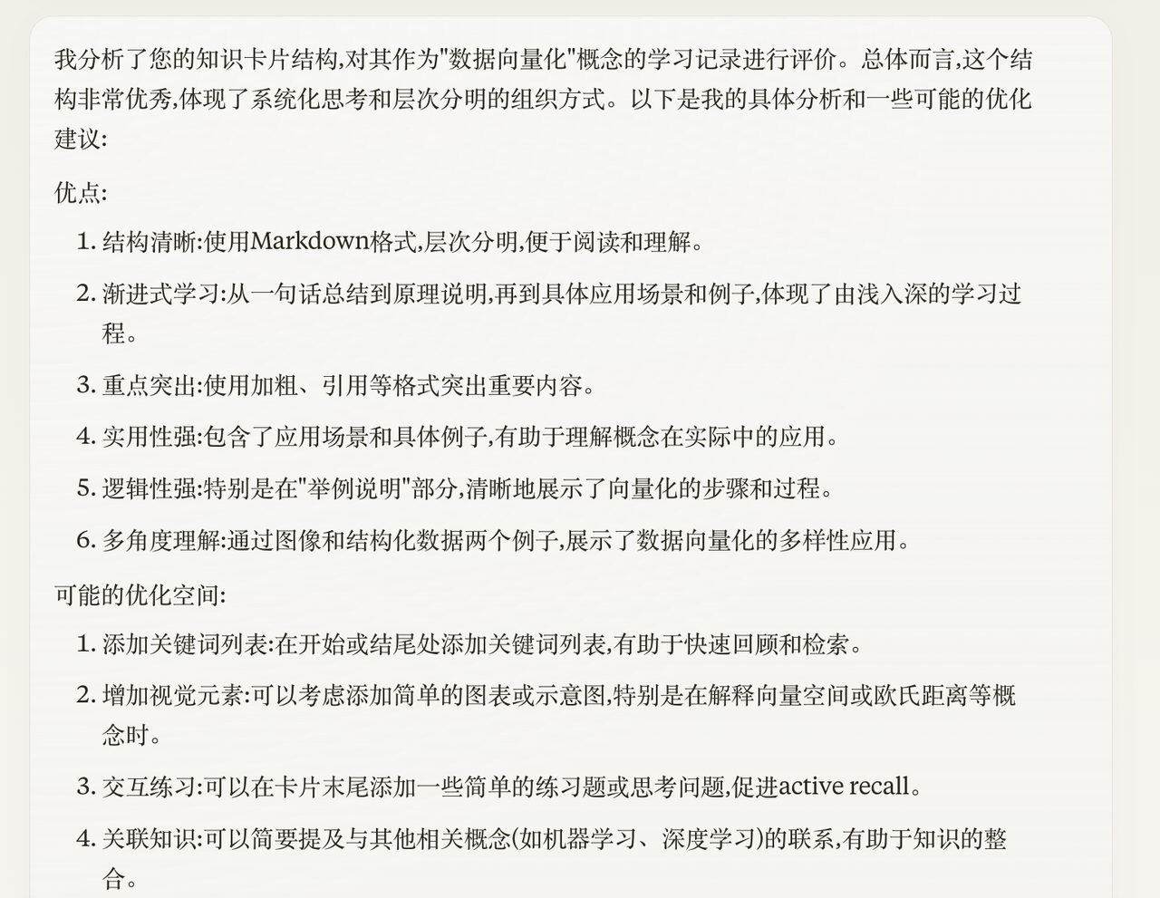 请你分析我的卡片结构,评价作为知识卡片记录,这个结构是否优秀,有无优化空间