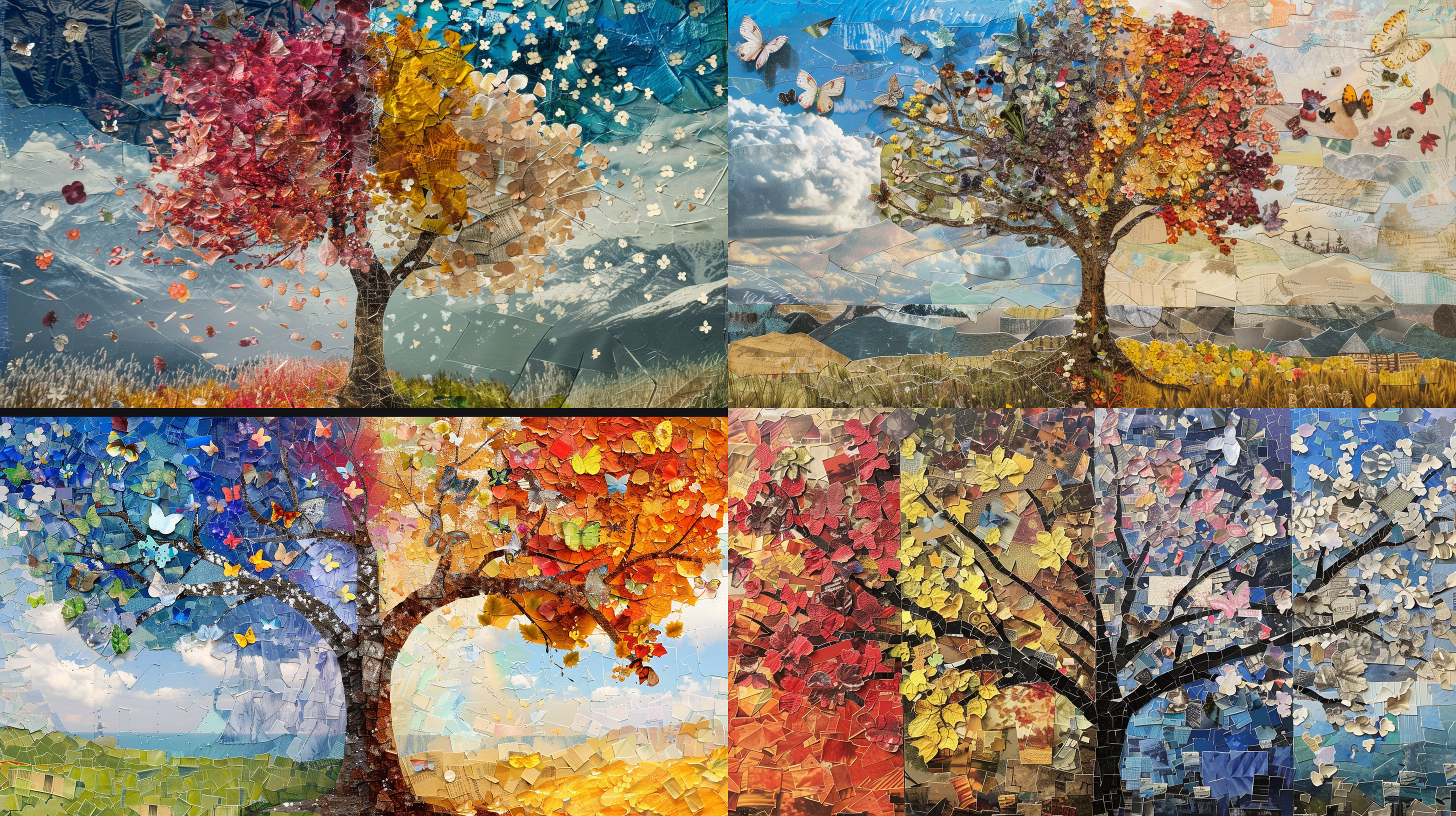 - 材料多样性:拼贴可以使用任何材料,包括但不限于纸张、布料、照片、杂志剪贴、壁纸、植物标本等。