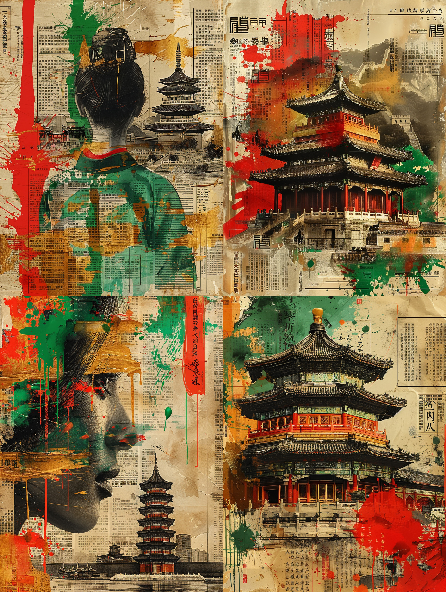 - 叙事性:拼贴作品往往具有很强的叙事性,通过组合不同的图像和文本,讲述一个故事或传达一个信息。