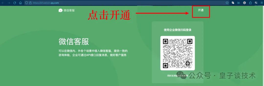 a. 访问微信客服 https://kf.weixin.qq.com/,点击开通