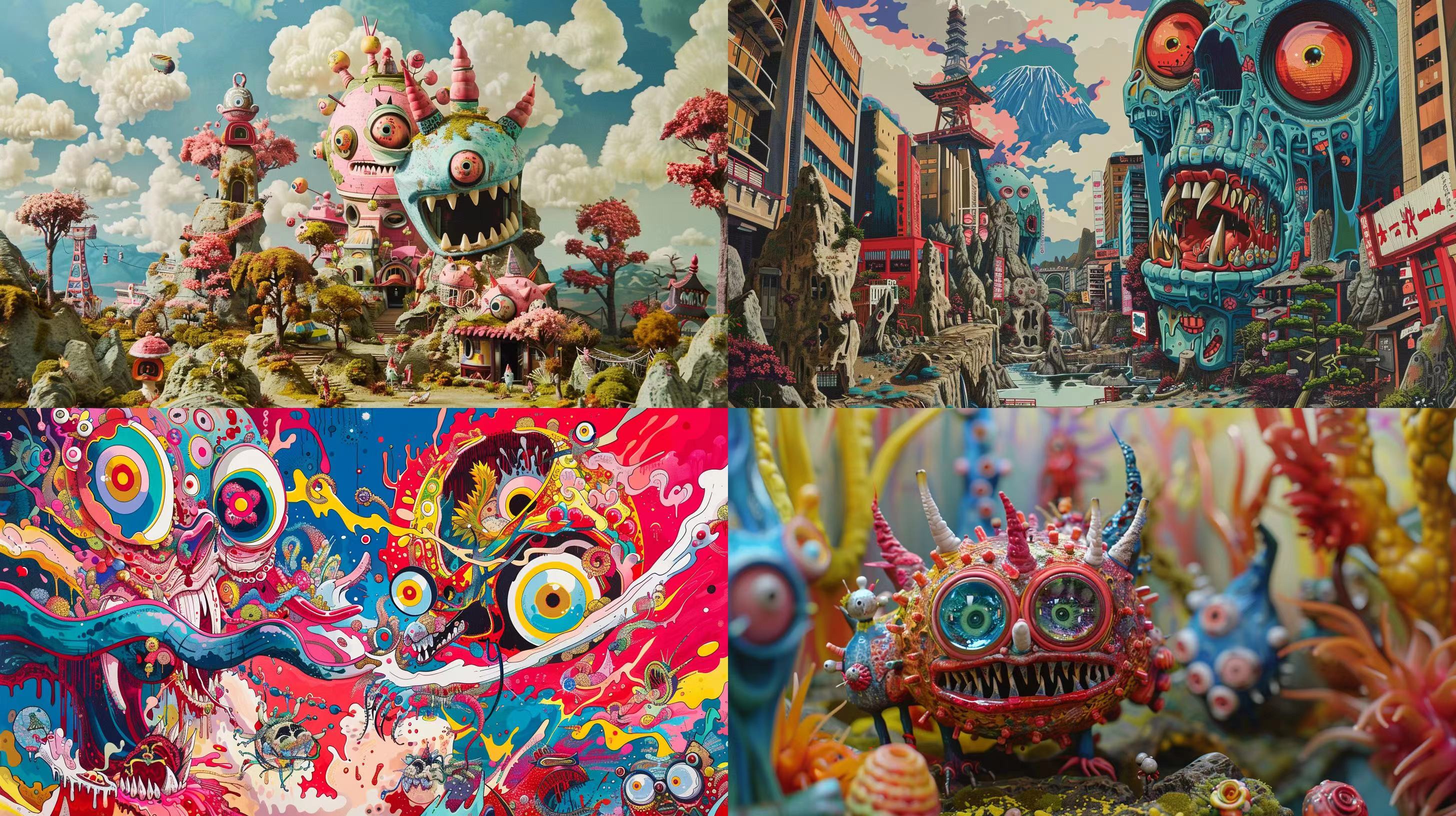 Murakami创立的“Superflat”艺术风格,受浮世绘影响,强调视觉的平面化,使用鲜艳的色彩和简化的形式